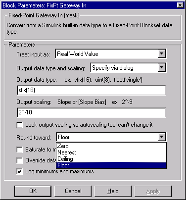 The blockset provides four rounding modes, which are shown below.