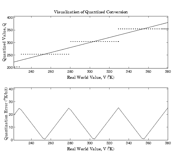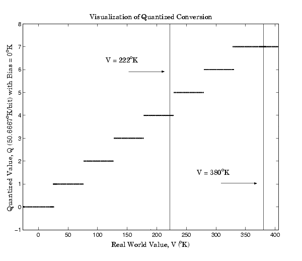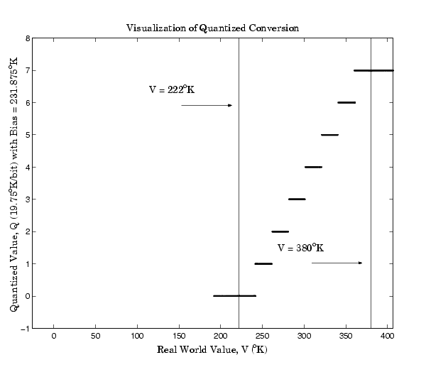 Notice that there are 7.5 possible quantization values. This is because only half of the first bit corresponds to temperatures (real-world values) greater than zero.